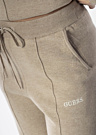 Guess sieviešu brīvā laika bikses Ursula ir lieliski piemērotas ikdienas valkāšanai, jo tās ir mīkstas, siltas un adītas, nodrošinot komfortu un elastību. Biksēm ir dizaina šuve priekšpusē un zīmola raksts zem kreisās kabatas, kā arī elastīga josta ar auklu, kas ļauj tās pielāgot pēc nepieciešamības. Modeles augums ir 176 cm, un viņa valkā S izmēru.