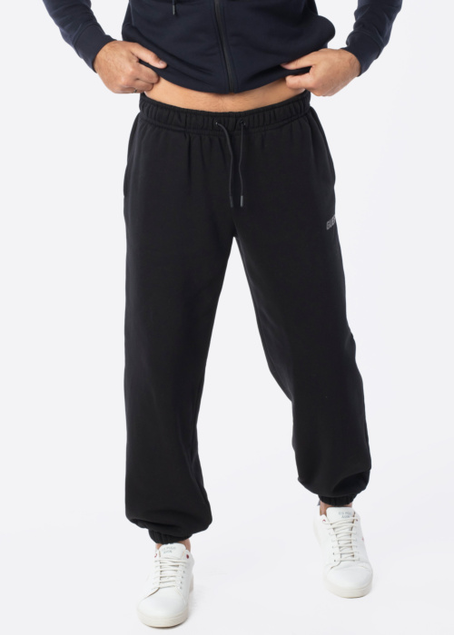 Guess vīriešu sporta bikses Emis ir radītas ar komfortablu un elastīgu jostasvietu, kas nodrošina ērtības ikdienas aktivitātēs. Biksēm ir siltināta iekšpuse un taisni staru gali, kā arī tuneļa aukla jostā, kas ļauj pielāgot to piegulšanu. Sānos ir redzams ikoniskais zīmola motīvs zem kreisās kabatas, un bikšu galos ir gumija. Modelis ir 188 cm garš un nēsā L izmēru.