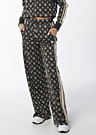 Guess sieviešu sporta bikses Peony izceļas ar interesantu rakstu un platiem staru galiem, kas piešķir tām pievilcīgu izskatu. Tās ir elastīgas un plānas, nodrošinot komfortu un brīvību kustībās. Bikses ir aprīkotas ar zīmola rakstu sānos, gumijas paneli uz jostas un tuneļa auklu, kas ļauj pielāgot jostasvietu. Kreisajā sānā ir zīmola logo, kas piešķir papildu stila akcentu. Modeles augums ir 177 cm un viņa valkā S izmēru.