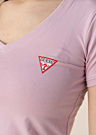 Guess sieviešu T-krekls ir vienkāršs un elegants, ar V-veida kakla izgriezumu, kas piešķir tam izsmalcinātību. Tas labi pieguļ augumam, ir mīksts un elpojošs, nodrošinot komfortu visas dienas garumā, kā arī elastīgs, lai pielāgotos ķermeņa kustībām. Sievišķīgais piegriezums izceļ auguma līnijas, un modeles augums ir 176 cm, viņa valkā S izmēru.