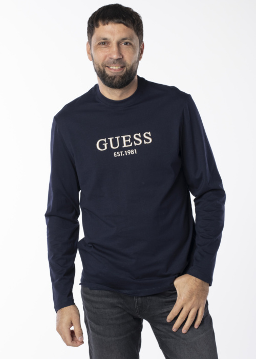 Guess vīriešu T-krekls ir lieliska izvēle ikdienas stilam, nodrošinot komfortu un eleganci. Krekls ir ar garām piedurknēm un apaļu kakla izgriezumu, kas piešķir klasisku un vienkāršu izskatu. Uz krūtīm ir izvietots zīmola nosaukums, kas piešķir apģērbam atpazīstamību un modernu akcentu.