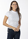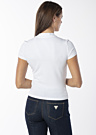 Guess sieviešu T-krekls ir jauneklīgs un stilīgs apģērbs, kas izceļas ar savu pievilcīgo dizainu. Tam ir apaļš kakla izgriezums un elastīgs materiāls, kas nodrošina ātru žūšanu un komfortu visas dienas garumā. Priekšpusē ir zīmola nosaukums un mirdzoši akmentiņi, kas piešķir kreklam īpašu šarmu. Modeles augums ir 176 cm, un viņa valkā S izmēru.