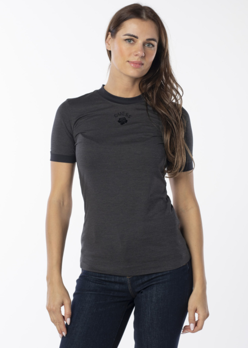 Guess sieviešu T-krekls ir ērts un klasisks apģērbs, kas cieši pieguļ augumam un ir izgatavots no elastīga materiāla. Krekla dizainu papildina valnītis uz apkakles un piedurkņu galos, kā arī zīmola logo uz krūtīm, kas piešķir tam elegantu izskatu. Modele ir 176 cm gara un nēsā S izmēru.