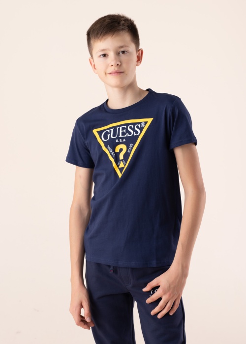 Vienkāršs, klasiska piegriezuma Guess T-krekls ir ideāls valkāšanai brīvajā laikā. Uz krūtīm novietots efektīgs zīmola logo, kam akcentu piešķir dzeltens krāsas tonis. Audumam raksturīgs labs elastīgums, kas valkāšanu padara ērtāku. Ideāls valkāšanai gan skolā, gan brīvajā laikā. Modeles augums 158 cm, valkā 152. izmēru. Materiāls: organiskā kokvilna 100%. Krāsa: tumši zila.