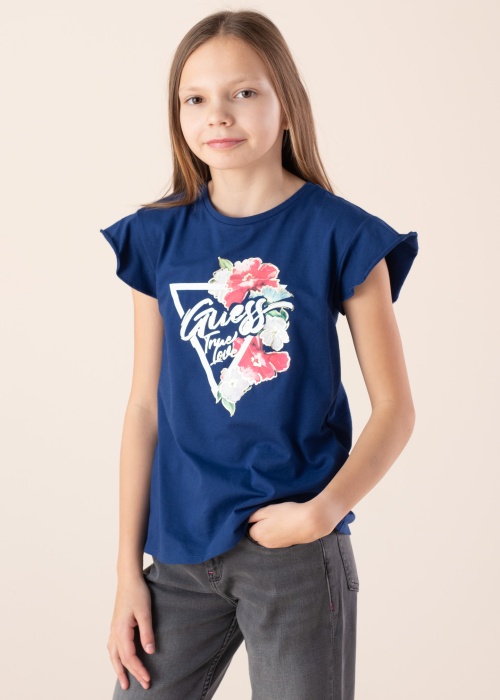 Jauneklīgs Guess t-krekls der dažāda rakstura dienām. Mīksts stilīgs t-krekls ir ar cap piedurknēm un labi pieguļošs , kā arī priekšpusi rotā izteiksmīgs zīmola logo. Foto: augums 152 cm valkā 147 izmēru.