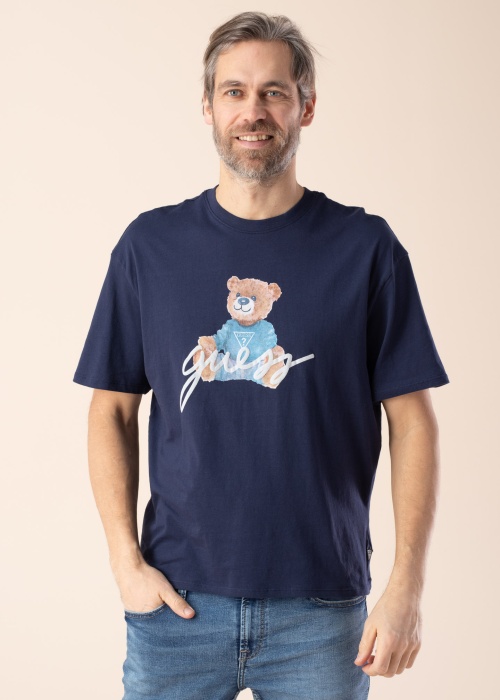 Dinamisks Guess t-krekls der dažāda rakstura dienām. Klasiska piegriezuma t-krekls ar brīvāka piegriezuma un ar apaļu kakla izgriezumu , kā arī uzmanību piesaistošas superīga bilde priekšpusē. Ērtu T-kreklu nekad nav par daudz! Foto: augums 195 cm valkā L izmēru.