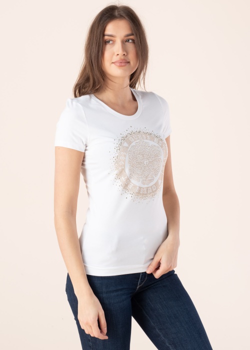 Efektīvs Guess t-krekls ļauj justies labi jebkur. Patīkami mīksts un elastīgs t-krekls ir ar apaļu kakla izgriezumu un ar daļēji pieguļošu piegriezumu. Priekšpusi rotā interesants dizains. Foto: augums 178 cm valkā S izmēru.