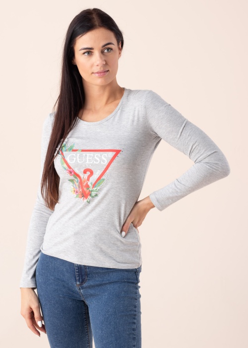 Mīļš un sievišķīgs Guess T-krekls ar garām piedurknēm Nelli ir izgatavots no zīdaini mīkstas kokvilnas. Uz lādes ir skaists zīmola logotips, kas dekorēts ar ziediem un akmeņiem. Patīkami mīkstajā audumā ir arī organiskā kokvilna, kas ir maiga gan ādai, gan videi. Modelis ir 176 cm garš un valkā S izmēru. Materiāls: 100% kokvilna. Krāsa: pelēka.