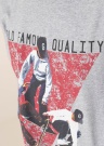 Guess puišu T-krekls ar īsām piedurknēm ir ļoti komfortabls un lieliski piemērots ikdienas valkāšanai. Krekls ir taisna piegriezuma, ar apaļu kakla izgriezumu un valnīti uz apkakles. Priekšpusē ir stilīgs drukas attēls, kas piešķir kreklam modernu izskatu. Modeļa augums ir 150 cm, un viņš valkā 147. izmēru.