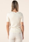 Sieviešu blūze Grace ir veidota retro stilā, kas apvieno eleganci un komfortu ar daļēji pieguļošu piegriezumu. Tā ir patīkami mīksta un maiga, padarot to lieliski piemērotu ikdienas valkāšanai mājās, darbā vai brīvdienās. Priekšpusē ir zīmola uzraksts un mirdzoši akmentiņi, un tā ir izgatavota no LENZING™ ECOVERO™ šķiedras, kas iegūta no sertificētiem atjaunojamiem koksnes avotiem, izmantojot videi draudzīgu ražošanas procesu un ievērojot augstus vides standartus. Modeles augums ir 177 cm, un viņa valkā S izmēru.