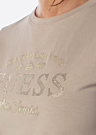 Guess sieviešu T-krekls Marina ir lieliska izvēle ikdienas stilam, piedāvājot komfortu un modernu izskatu. Tas ir aprīkots ar apaļu kakla izgriezumu un īsām piedurknēm, kas nodrošina ērtumu un brīvību kustībās. Modele ir 176 cm gara un nēsā S izmēru.
