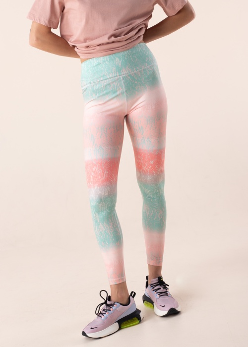 Guess treniņbikses skaistās pasteļkrāsāsās ir lieliski piemērotas sporta treniņiem. Platā jostas vieta ērti pieguļ valkātāja ķermenim, un mugurpusē ir atvērta tipa kabata. Kreiso kāju rotā izteiksmīgs zīmola uzraksts. Audumam ir lieliska elastība, kas nodrošina kustību brīvību sportā. Modeles augums ir 177 cm, un tā valkā S izmēru.