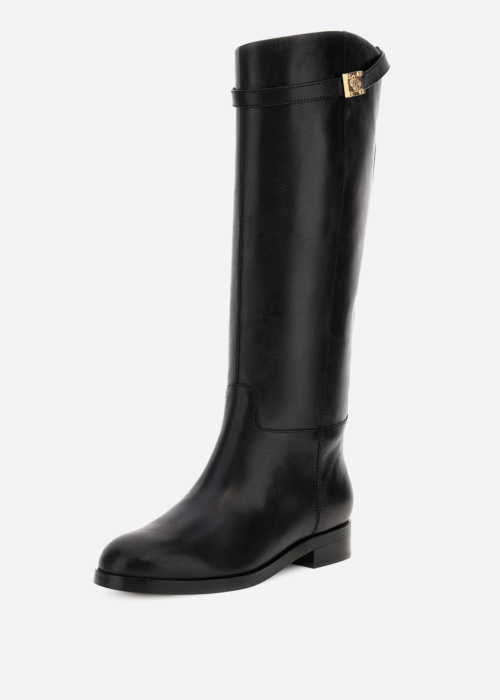 Guess sieviešu zābaki Zoro ir moderni un praktiski apavi, kas piesaista uzmanību ar savu eleganto dizainu. Šie zābaki ir aprīkoti ar zemu zoli, kas nodrošina komfortu ikdienas gaitās, un ir uzticama un klasiska izvēle jebkurai sievietei. Augšdaļā ir stilīga siksna, kas piešķir papildu šarmu, un zīmola etiķete ir izvietota sānos, lai uzsvērtu to ekskluzivitāti. Nepilna garuma rāvējslēdzējs sāna iekšpusē nodrošina vieglu uzvilkšanu un noņemšanu, padarot šos zābakus par ideālu izvēli jebkurai sezonai.