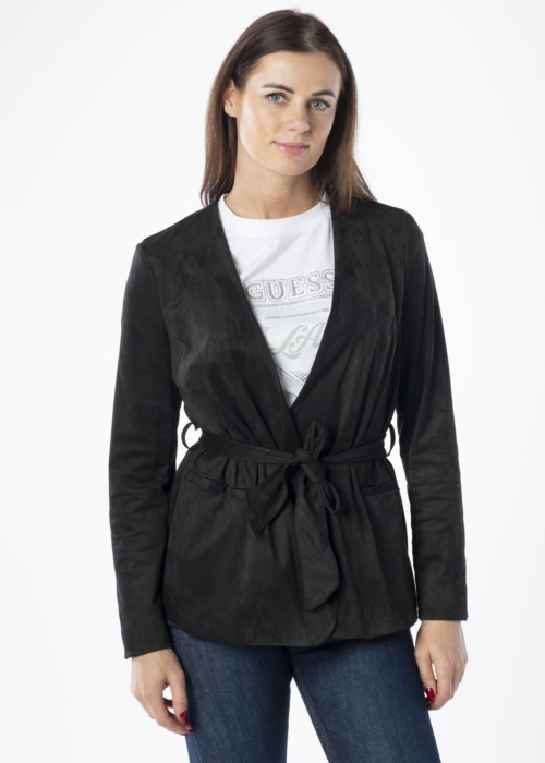 Guess sieviešu jaka Mila ir eleganta un ikdienas drēbe, kas izceļas ar savu izsmalcināto dizainu. Tā ir labi pieguļoša un izgatavota no samta, kas piešķir tai īpašu šarmu. Jakai ir sasienama josta viduklī un priekškabatas, kas padara to par praktisku izvēli. Modeles augums ir 176 cm, un viņa valkā S izmēru.