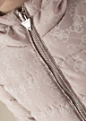 Guess meiteņu ziemas mētelis ir gan stilīgs, gan praktisks drēbes gabals aukstajam gadalaikam. Mētelis ir garš un stepēts, kas nodrošina papildu siltumu un komfortu. Tam ir fiksēta kapuce un kabatas priekšpusē, kā arī elastīgas aproces, kas pasargā no vēja. Mēteļa virspusi rotā zīmola raksts, piešķirot tam unikālu izskatu. Modeles augums ir 145 cm, un viņa valkā 147. izmēru.