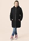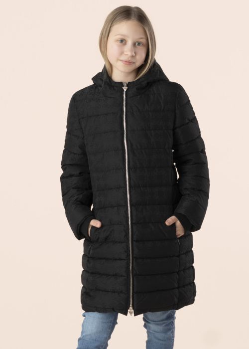 Guess meiteņu ziemas mētelis ir elegants un garš, nodrošinot gan stilu, gan komfortu. Tas ir veidots ar stepētu dizainu un ir aprīkots ar fiksētu kapuci, kas sniedz papildu siltumu aukstajās ziemas dienās. Priekšpusē ir praktiska aizdare, un piedurkņu galos ir valnītis, kas palīdz aizsargāt pret vēju. Zīmola raksts uz virspuses piešķir mētelim unikālu izskatu. Modeles garums ir 145 cm, un viņa valkā 147. izmēru.