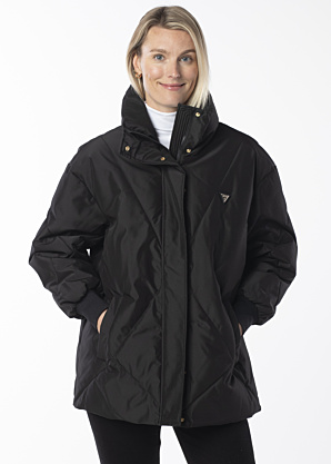 Guess sieviešu ziemas jaka Stefy ir eleganta un stilīga izvēle ikdienas valkāšanai. Tai ir augsta apkakle un stepēts dizains, kas nodrošina komfortu un siltumu aukstākajās dienās. Priekšpusē ir rāvējslēdzējs, kas papildināts ar Guess logo uz krūtīm, piešķirot jakai izsmalcinātu izskatu. Piedurkņu galos ir valnītis, un zem kreisās kabatas ir dekoratīva detaļa, kas piešķir jakai unikālu akcentu.