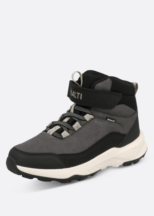 Halti zēnu un pārgājienu zābaki Benji ir viegli un komfortabli, padarot tos lieliski piemērotus ikdienas lietošanai. Šie modernie un sportiskie zābaki ir izgatavoti no materiāla, kas atgrūž ūdeni, nodrošinot sausumu un patīkamu sajūtu jebkuros laikapstākļos. Priekšpusē ir klipsis un atstarotājs, kas uzlabo drošību un redzamību, savukārt aizmugurē ir papildu atstarotājs. Zābaku papēdi rotā stilīgs Halti logo, kas piešķir tiem unikālu izskatu.