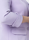 Hansmark sieviešu jaka Petra ir eleganta un vienkrāsaina drēbe, kas izceļas ar savu sievišķīgo piegriezumu un gludo tekstūru. Jaka ir aprīkota ar atlokāmu apkakli un pogu aizdari priekšpusē, kā arī praktisku kabatu ar atloku, kas piešķir tai stilīgu izskatu. Modeles augums ir 178 cm un viņa valkā 36. izmēru.