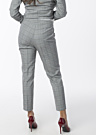 Hansmark sieviešu klasiskās bikses Naali ir stilīgas un elegantas, ar rūtainu rakstu, kas piešķir tām interesantu izskatu. Viegls un brīvi krītošs audums nodrošina komfortu, savukārt buktes priekšpusē un aizmugurē piešķir izsmalcinātību. Josta ir aizdarāma ar pogu un rāvējslēdzēju priekšpusē, un modeļa garums ir 176 cm, valkājot 38. izmēru.