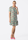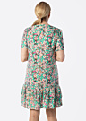 Hansmark sieviešu kleita Larana ir eleganta un stilīga izvēle jebkuram pasākumam. Kleita izceļas ar ziedu rakstu, apaļu kakla izgriezumu un īsām piedurknēm, kas piešķir tai sievišķīgu šarmu. Audums nodrošina labu kritumu, kas piešķir kleitai izsmalcinātu izskatu. Modeles augums ir 178 cm, un viņa valkā 38. izmēru.