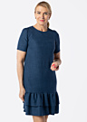 Hansmark sieviešu kleita Larana ir vienkārša un eleganta, ar apaļu kakla izgriezumu un īsām piedurknēm, kas piešķir tai sievišķīgu izskatu. Kleita ir lieliski piemērota dažādiem pasākumiem, pateicoties tās labajam kritumam un apburošajai rišas malai apakšā. Modeles augums ir 178 cm un viņa valkā 36. izmēru.