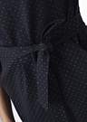 Hansmark sieviešu kleita Oksaka ir eleganta un izsmalcināta izvēle, kas izceļas ar trīs ceturtdaļu garuma piedurknēm un V-veida kakla izgriezumu. Kleita ir elastīga un patīkami mīksta, izgatavota no izturīga auduma ar interesantu rakstu. Tai ir sasienama josta un kabatas sānos, kas piešķir praktiskumu. Modeles augums ir 177 cm, un viņa valkā 38. izmēru.