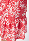 Hansmark sieviešu kleita Polka ir elegants tērps ar ziedu rakstu, kas piešķir tai rotaļīgu un izteiksmīgu izskatu. Kleitas mežģīņu augšdaļa un krokojums apakšmalā piešķir tai izsmalcinātu un sievišķīgu pieskārienu. Modeles augums ir 178 cm, un viņa valkā 38. izmēru.