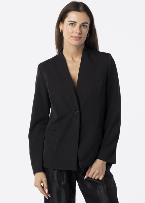 Hansmark sieviešu žakete Amanda ir klasiska un eleganta izvēle ar V-veida kakla izgriezumu, kas piešķir tai izsmalcinātību. Tā ir labi pieguļoša un elastīga, izgatavota no izturīga auduma, kas nodrošina komfortu gan ikdienas valkāšanai, gan formālos pasākumos. Priekšpusē ir pogu aizdare, kas piešķir žaketei solīdu izskatu, un sānos ir praktiskas kabatas. Modele ir 176 cm gara un nēsā 40. izmēru.