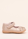 Princeses zelta Happy Bee apaviem ir ērta apaļa purngala daļa, kuru rotā tauriņš ar akmeņiem. Viegli pielāgot kājas ar velcro siksnu. Iekšpuse ir izgatavota no dabīgas ādas, un izturīgajai gumijas zolei ir laba elastība un saķere. 24. izmēra svars ir 63 g. Krāsa: zelta.