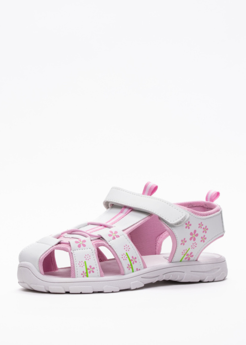 Happy Bee meiteņu sandales ir lieliska izvēle ikdienas valkāšanai, jo tās ir ļoti komfortablas un praktiskas. Sandales ir aprīkotas ar slēgtu purngalu, kas nodrošina papildu aizsardzību un ērtumu. Ziedu raksts piešķir apaviem rotaļīgu un stilīgu izskatu, kas patiks jebkurai mazajai dāmai. Sprādze virspusē ļauj viegli un ātri pielāgot sandales izmēru, nodrošinot labu piegulšanu. Gaisa atveres purngalā nodrošina labu ventilāciju, kas ir īpaši svarīgi siltās dienās.