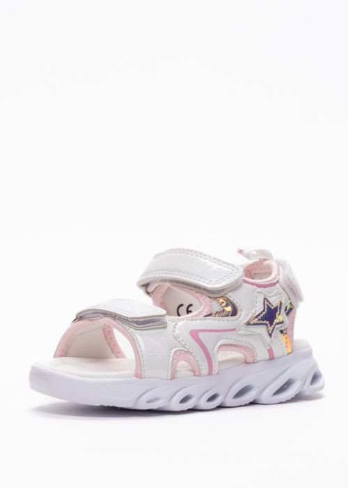 Happy Bee meiteņu sandales ar gaismiņām ir lieliska izvēle mazajām dāmām, kas vēlas izcelties. Šīs sandales ir vieglas un moderni veidotas, padarot tās piemērotas valkāšanai gan iekštelpās, gan ārā. Virspusē un papēdī ir aizdares, kas nodrošina komfortablu un drošu valkāšanu. Mirdzošā virspuse un dekoratīvā detaļa sānos piešķir sandalēm īpašu šarmu. Šis apavu pāris noteikti kļūs par iecienītu izvēli jebkurā gadalaikā.
