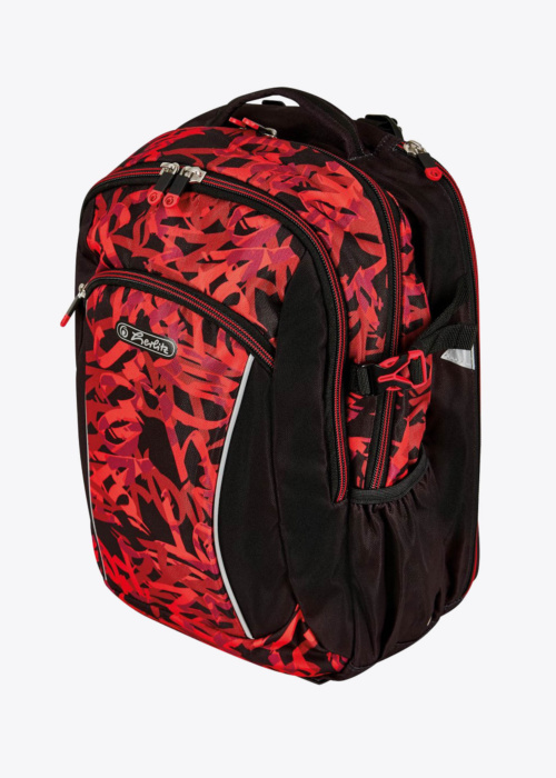 Herlitz puišu mugursoma ir praktiska un ietilpīga, nodrošinot pietiekami daudz vietas visām nepieciešamajām lietām. Muguras daļa un regulējama garuma plecu siksnas ir polsterētas, kas nodrošina papildu komfortu, savukārt somas augšpuse ir ūdensnecaurlaidīga, pasargājot saturu no mitruma. Soma ir aprīkota ar interesantu rakstu virspusē, priekšpusē ir atvērtas kabatas sānos, kabata ar rāvējslēdzēju sānos un atstarotājs, kas palielina drošību tumsā.