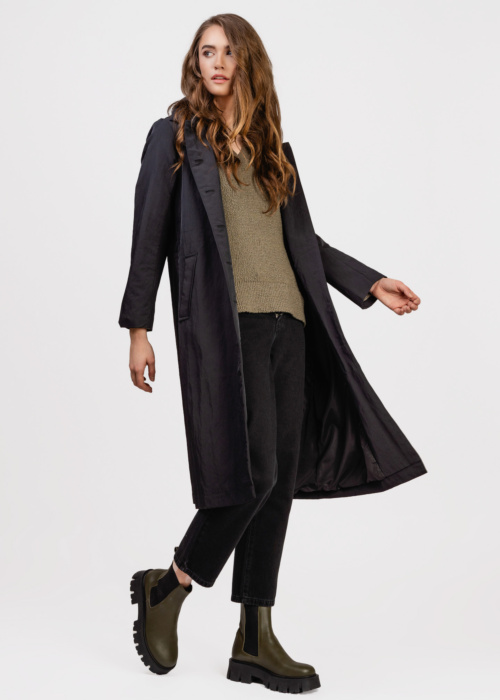 Ivo Nikkolo sieviešu pavasara-rudens mētelis ir stilīgs un elegants apģērbs, kas lieliski papildinās jūsu garderobi. Mētelim ir noņemama kapuce, kas nodrošina papildu aizsardzību pret vēju un lietu. Priekšpusē ir praktiskas kabatas, kurās var ērti glabāt nepieciešamās lietas. Viduklī ir savilkšanas gumija, kas ļauj pielāgot mēteļa piegulumu un izcelt siluetu.