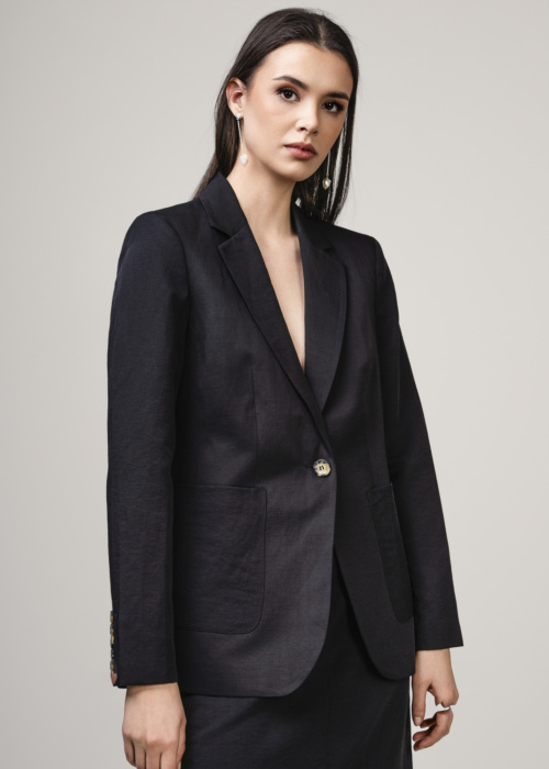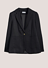Ivo Nikkolo sieviešu žakete Blume ir klasiska un eleganta izvēle jebkurai garderobei. Tai ir atlokāma apkakle un stilīga pogu aizdare priekšpusē, kas piešķir izsmalcinātu izskatu. Piedurkņu galos un mugurpusē esošais šķēlums nodrošina papildu komfortu un kustību brīvību.