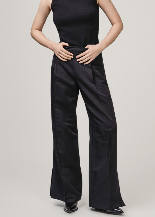 Ivo Nikkolo sieviešu klasiskās bikses Taster ir lieliska izvēle lietišķam un elegantam izskatam. Tām ir augsta jostasvieta un plati staru gali, kas piešķir modernu un stilīgu siluetu, savukārt rāvējslēdzējs kreisajā sānā nodrošina vieglu uzvilkšanu. Bikses ir papildinātas ar buktem uz starām un šķēlumu bikšu galos, kas piešķir tām izsmalcinātu akcentu.