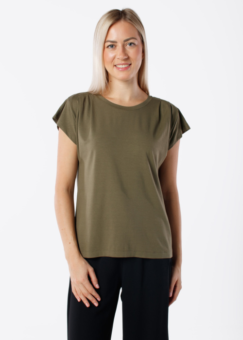 Ivo Nikkolo sieviešu T-krekls Joana ir stilīgs un komfortabls apģērbs, kas lieliski papildinās jūsu garderobi. Tas ir veidots ar īsām piedurknēm un apaļu kakla izgriezumu, nodrošinot gan ērtumu, gan modernu izskatu. Šis T-krekls ir lieliska izvēle ikdienas valkāšanai, piedāvājot gan praktiskumu, gan eleganci.