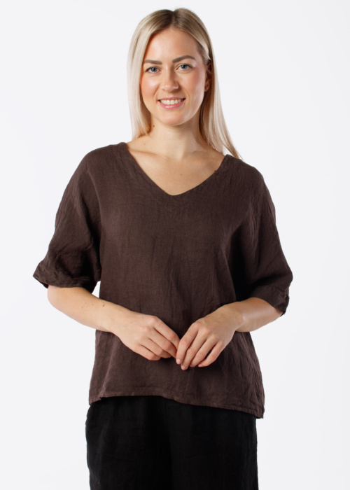 Ivo Nikkolo sieviešu blūze Pagata ir veidota ar brīvu piegriezumu, kas nodrošina komfortu un kustību brīvību. Šī vienkāršā blūze ar V-veida kakla izgriezumu piešķir elegantu un modernu izskatu. Tā ir izgatavota no ādai draudzīga materiāla, padarot to lieliski piemērotu ikdienas valkāšanai.
