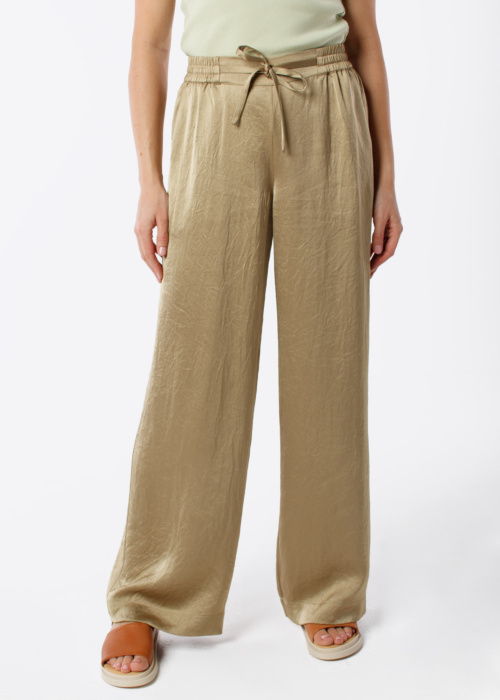 Ivo Nikkolo sieviešu garās bikses Tessaki ir lielisks apģērbs, kas apvieno eleganci un komfortu. Tām ir plati staru gali, kas brīvi krīt, radot vieglu un zīdainu sajūtu, un to spīdīgais materiāls piešķir īpašu šarmu. Biksēm ir elastīga jostasvieta ar auklu, kas nodrošina ērtu un pielāgojamu valkāšanu, savukārt priekšpusē tās izceļas ar stilīgu dizainu.