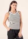 Vasarīgs Ivo Nikkolo tops der valkāšanai ikdienā. Bez piedurknēm elastīgs tops ir valnīša auduma un ar svītrainu rakstu. Saskaņo ar dažādiem apģērbiem un radi jaunus stilus! Foto: augums 176 cm valkā S izmēru.