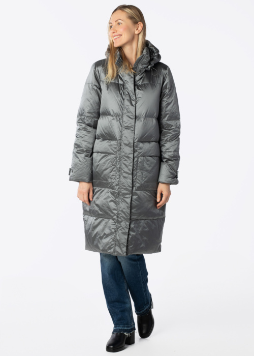 Ivo Nikkolo sieviešu dūnu mētelis Madesh ir stilīgs un viegls apģērbs, kas lieliski piemērots vēsākam laikam. Mētelim ir stepēts dizains, kas piešķir tam elegantu izskatu un nodrošina papildu siltumu. Praktiskuma nolūkos mētelis ir aprīkots ar savelkamu gumiju uz kapuces un piedurkņu galos, kas palīdz saglabāt siltumu un aizsargā no vēja. Priekšpusē atrodas kabatas ar atloku, kas ir gan funkcionālas, gan stilīgas, nodrošinot vietu nepieciešamajām lietām.