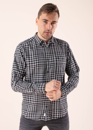 Storm Jack & Jones krekls ar stingru, kvadrātveida rakstu atgādina retro flaneļa kreklus. Kokvilnas kreklam ir skaista apkakle, priekšējā aizdare ar pogām. Tā garo piedurkņu galos ir aproces, kuras platumu var regulēt ar divām pogām. Krūšu kreisajā pusē ir uzšūta kabata, kas aizveras ar pogu un ir dekorēta ar nelielu metāla logotipu. Modelis ir 188 cm garš un valkā L izmēru.