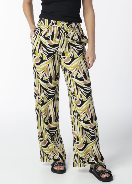 JDY sieviešu bikses Nile ir lieliski piemērotas vasaras dienām. Tās ir rakstainas, ar augstu jostasvietu un platiem staru galiem. Plānais audums ar labu kritumu padarīs katru dienu īpašu, un elastīgā josta nodrošina komfortu, savukārt sānos ir kabata. Bikses ir izgatavotas no LENZING™ ECOVERO™ šķiedras, kas iegūta no sertificētiem atjaunojamiem koksnes avotiem, izmantojot videi draudzīgu ražošanas procesu un ievērojot augstus vides standartus. Modele ir 176 cm gara un valkā S izmēru.