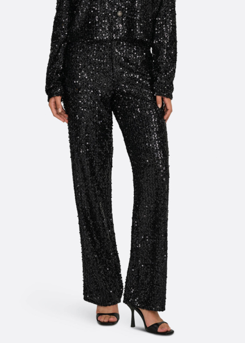JDY sieviešu bikses Tina izceļas ar platiem staru galiem, kas piešķir tām elegantu izskatu. Tās ir aprīkotas ar elastīgu jostasvietu, kas nodrošina komfortu un pielāgošanos dažādām ķermeņa formām. Šīs bikses ir lieliski piemērotas svētkiem, jo to virspusē spīdīgi fliteri piešķir īpašu mirdzumu un šarmu.