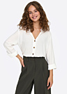 Priekšpusē blūze aiztaisāma ar pogām, un arī piedurkņu gali ir ar pogu aizdari, kas piešķir koptu noskaņu un ļauj viegli pielāgot izskatu. Šī blūze labi noder ikdienai un brīvā laika aktivitātēm.