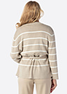 JDY sieviešu kardigans Sara ir stilīgs un mīksts apģērbs ar garām piedurknēm un svītrainu rakstu. Tas ir adīts un aprīkots ar sasienamu jostu viduklī, kas piešķir eleganci un komfortu. Kardigans ir izgatavots no LENZING™ ECOVERO™ šķiedras, kas iegūta no sertificētiem atjaunojamiem koksnes avotiem, izmantojot videi draudzīgu ražošanas procesu un ievērojot augstus vides standartus. Modeles augums ir 178 cm un viņa valkā S izmēru.