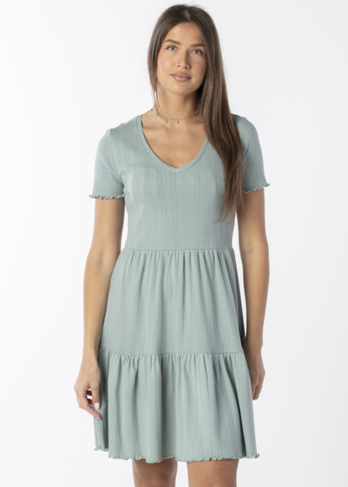JDY sieviešu kleita Salsa ir vienkārša un komfortabla, ar īsām piedurknēm un apaļu kakla izgriezumu. Kleita ir elastīga un mīksta, ar reljefu rakstu virspusē, kas piešķir tai īpašu šarmu. Apburošas rišas piedurkņu galos un apakšmalā piešķir kleitai eleganci. Modeles augums ir 178 cm un viņa valkā S izmēru.