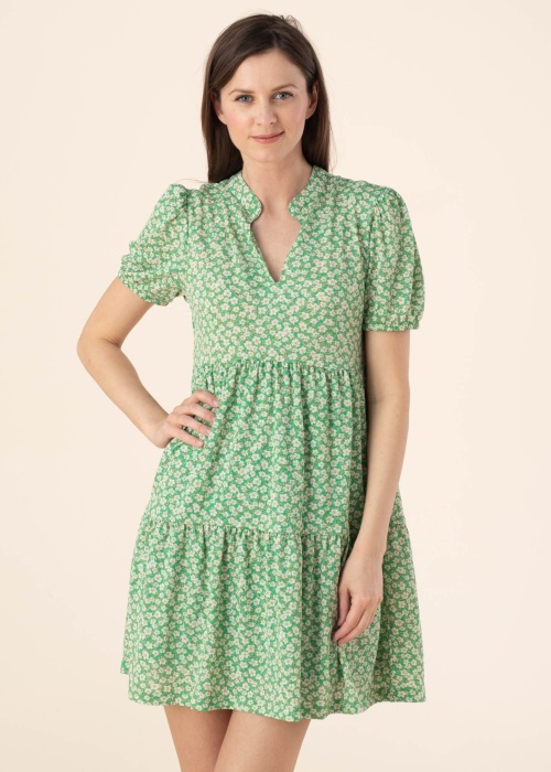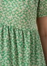 Jauka JDY kleita parūpējies, lai varētu labi justies visu garo dienu. Viegla un patīkami mīksta kleita ir ar V-veida kakla izgriezumu un ar brīvāka piegriezuma. Svārku daļu veido plaši volāni un piedurkņu galos ir gumijas. Iekšpusē ir apakškleita. Foto: augums 177 cm valkā S izmēru.