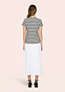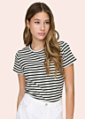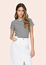 JDY sieviešu T-krekls Solar ir izgatavots no valnīša auduma, kas nodrošina mīkstu un elastīgu sajūtu. Krekls ir ar svītrainu rakstu un apaļu kakla izgriezumu, piešķirot tam modernu un stilīgu izskatu. Tā daļēji pieguļošais piegriezums padara to par lielisku izvēli ikdienas valkāšanai, nodrošinot komfortu un brīvību kustībās.
