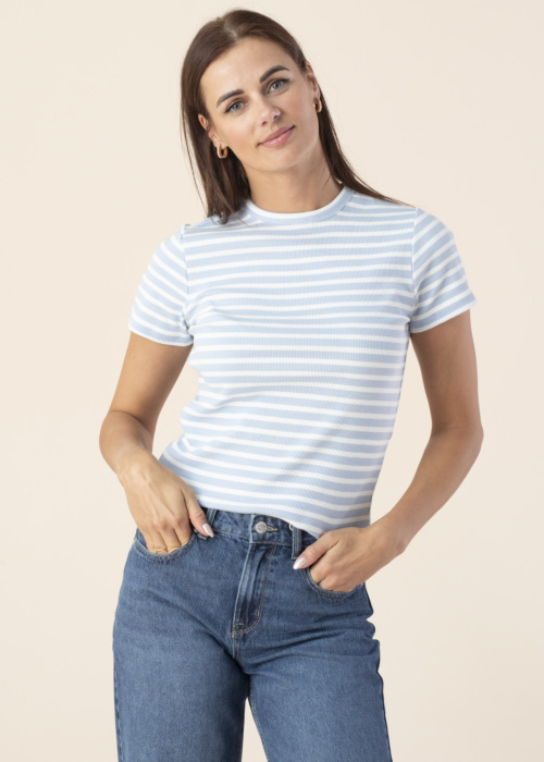 JDY sieviešu T-krekls Solar ir lieliska izvēle ikdienas stilam, piedāvājot svītrainu dizainu, kas piešķir dinamisku izskatu. Krekls ir ar īsām piedurknēm un apaļu kakla izgriezumu, kas nodrošina komfortu un brīvību kustībās. Materiāls ir elastīgs un elpojošs, padarot to ideāli piemērotu jebkurai aktivitātei. Modele ir 176 cm gara un valkā S izmēru.